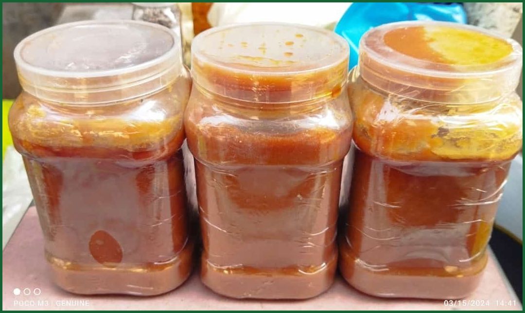 গ্রামীন পরিবেশে আখের রস থেকে প্রস্তুতকৃত আখের দানাদার গুড়।